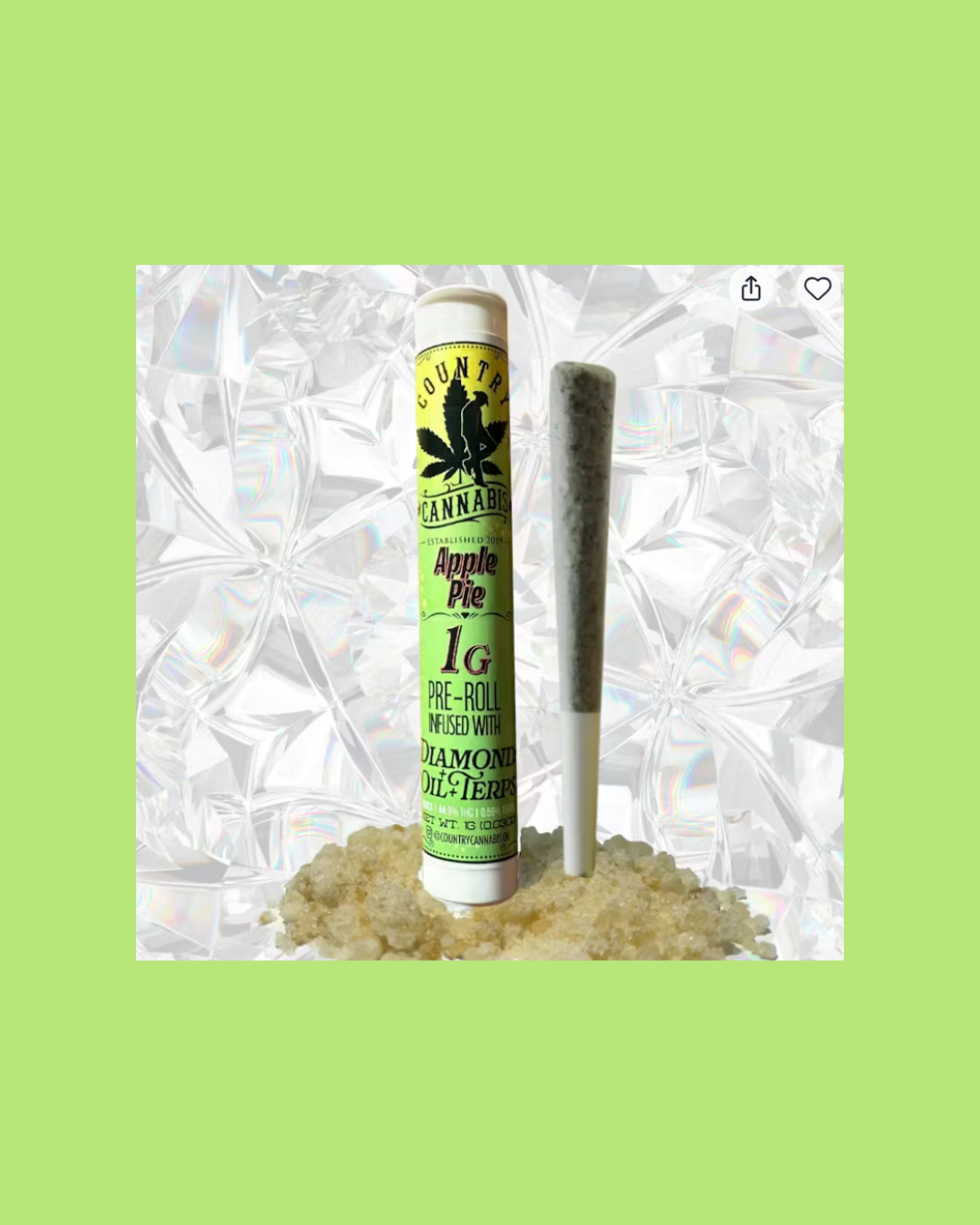 Country Cannabis Infused Pre-Roll, a 1-gram joint crafted for potency and flavor. A blend of top-shelf flower, THCA Diamonds, and cannabis oil, ensuring a smooth and consistent burn from start to finish.